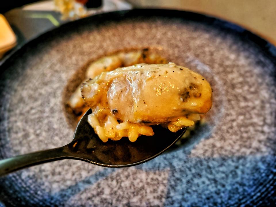 意大利飯上放了兩個蟹鉗啖啖肉 🦀 吸收了龍蝦汁的意大利飯與已拆肉的絲絲蟹肉絲混在一起,幾乎每一口都能嚐到蟹肉🥰 口感很豐富😋 味道也比廣島蠔那款意大利飯清新