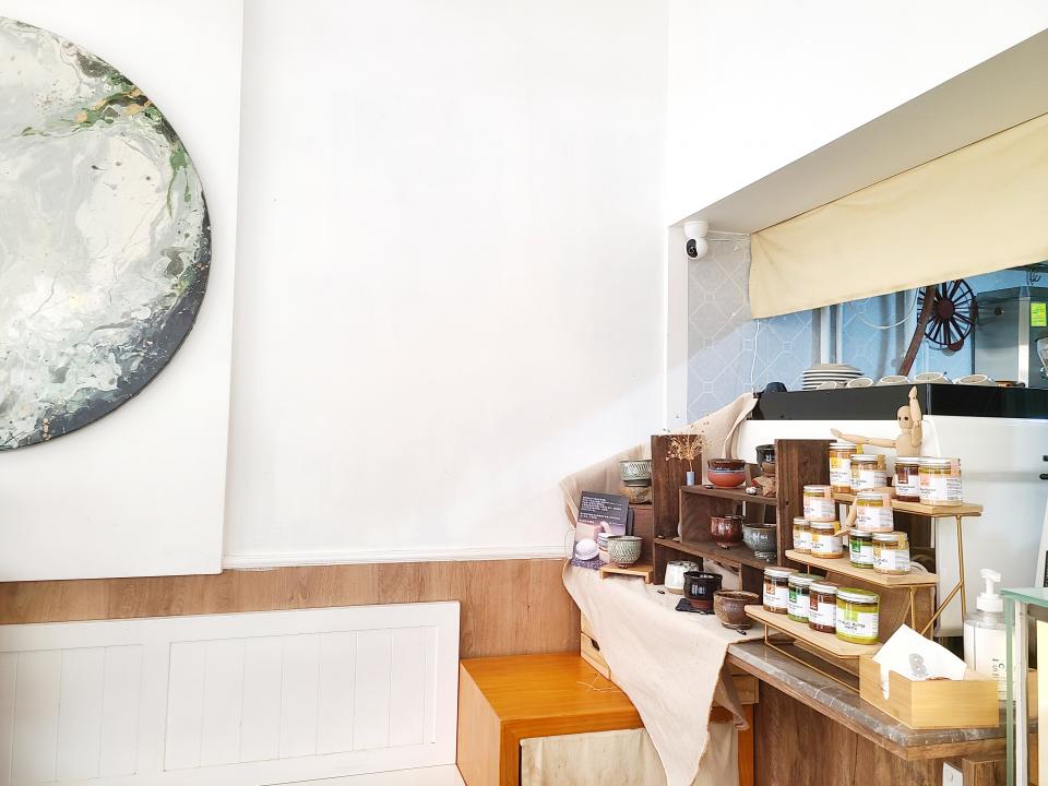 店小小的走簡約風格,以白色牆配搭木系傢具