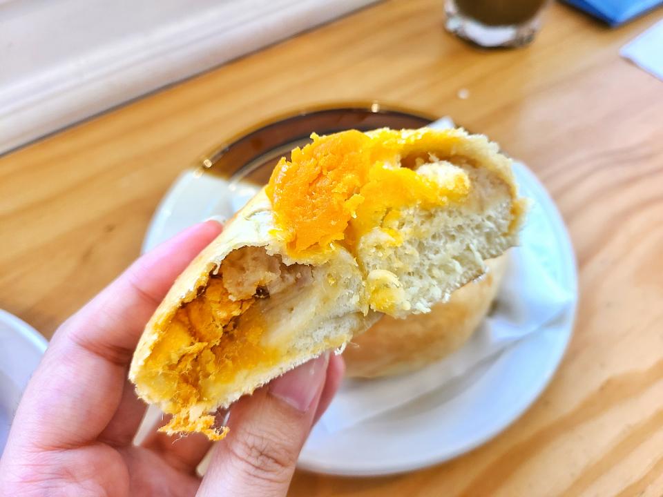 這款材料很豐富,有咸蛋黃、芋頭打成的芋泥和肉鬆,充滿咸香味 🤗